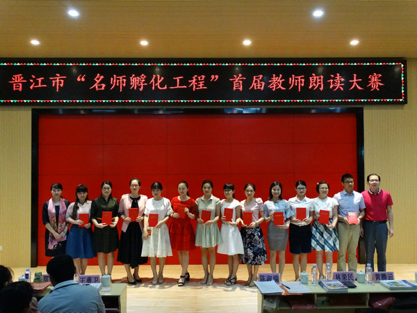 為進一步推動晉江市小學語文教師專業成長,鍛煉教師的教學技能,晉江市首屆“名師孵化工程”小學語文教師朗讀大賽于5月20日上午在中遠學校隆重舉行。本次活動由晉江市教育系統黨委、晉江市教師進修學校主辦,泉州中遠學校承辦。晉江市教育系統黨委副書記蔡朝陽、晉江市教師進修學校校長姚榮祖、副校長陳淑端,小學語文教研室教研員李碧霞、施麗聰在嘉賓席就座,泉州師范學院文學與傳播學院黨委書記王勇衛教授、泉州師范學院人文學院鄭亞芳教授,泉州幼兒師范高等學校漢語言文字教研室主任鄭曉春教授、泉州廣播電視報黃騰云記者、晉江市電視臺綜藝部主任吳文鋒、晉江五中林榮民老師等應邀出席并擔任評委。政府督導專員、中遠學校黨支部副書記吳偉鴻同志出席比賽現場。     比賽活動由市教師進修學校教研員李碧霞主持,泉州中遠學校校長黃金盾、晉江市教師進修學校副校長陳淑端分別致辭。     本次比賽活動由晉江市各教委辦遴選37名優秀語文教師參與決賽。朗誦比賽內容從小學高年級語文教材中抽選。經過三個多小時緊張而有序的角逐,最后評出一等獎8名,二等獎12名,三等獎16名。     比賽現場,各位參賽選手精神抖擻,信心十足,以其嫻熟的語言技巧,或聲情并茂,或抑揚頓挫地誦讀文本,神態自然,聲韻諧和,以富有魅力的語言特質描繪了一幅幅栩栩如生的文本畫面,贏得全場嘉賓、觀眾陣陣雷鳴般的掌聲。     已屆68高齡的教授、中國新思維家庭教育創始人、北京新東方教育學院副院長張秀云現場示范性朗誦《我的南方和北方》,鏗鏘有力,聲律和諧,贏得大家的高度贊賞和熱烈掌聲。國家普通話測試員鄭曉春教授對本次比賽給予精辟點評,鄭教授充分肯定了本次比賽所取得的可喜成績,并提出諸多專業性指導意見和建議,她指出,在今后的比賽或教學過程中,要進一步明確對象感,加強對語言效果的整體把控;有效區分語文課堂常態與技能比賽的異同;注重文本誦讀在語調、情感、韻律、角色等方面的合理切換,于繪聲繪色的描摹中提升朗讀層次感,彰顯語言文字的聲色魅力。     泉州師范學院文學與傳播學院黨委書記王勇衛教授認為,“書讀百遍,其義自見”,作為一線語文教師要進一步加強朗讀技能的培養,注重文本回歸,有效提升對語言節奏、情感、語調、情景等方面的綜合駕馭能力,有效推進語文教學工作向縱深方向發展。姚榮祖校長指出,舉辦此次活動,旨在以點帶面,促進名師孵化,尋求提升教師技能的新途徑,創新課堂朗讀指導方式,促進教師整體素養的穩步提升,從而有效提高語文教研水平和教學質量。