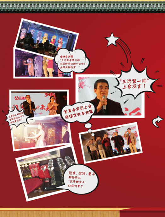 年終歲末恰逢立春時節,2月4日,“三遠實力派 共筑新未來”2016新春年會熱鬧上演!當晚,工程管理中心以熱鬧歌曲開場相邀,三遠的實力派們歡聚一堂。“三遠第一帥”吳遠康董事長上臺發言,回首舊歲,展望新朝;行政管理中心總監謝喜萍女士主持召開了三遠2015年度頒獎儀式,褒獎了2015年度表現突出的優秀管理者、優秀部門、優秀員工等。頒獎儀式后,晚會表演正式拉開序幕,各中心紛紛獻上精心編排的精彩節目,現場最令人牽掛的莫過于抽獎環節,尤其是當晚董事會成員還通過微信群紅包的互動形式給同事們發送了許多“實誠”的祝福!(撒花)